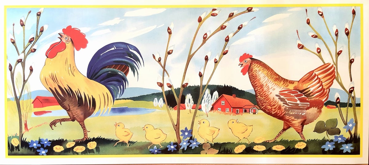 Nostalginen pääsiäistaulu Kukko ja kana